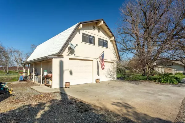 Push that remote on the heavy duty Lift Master gate and drive thru this beautiful 8 acres of walnuts with a large home, oversized dettached garage and a huge shop building. The metal shop is aprox 35 X 135 and includes 3 roll up doors, plus a dark room, bathroom, 2 insulated rooms office/studio. The oversized dettached 2 car garage also has a workshop area with finished area upstairs for storage or guest quarters. All John Deer equipment will stay including 60" mower deck and bucket, garden tractor/mower, and John Deer gator. This 8 acres is completely fenced using field fencing. There is so much to show and share about this amazing opportunity!